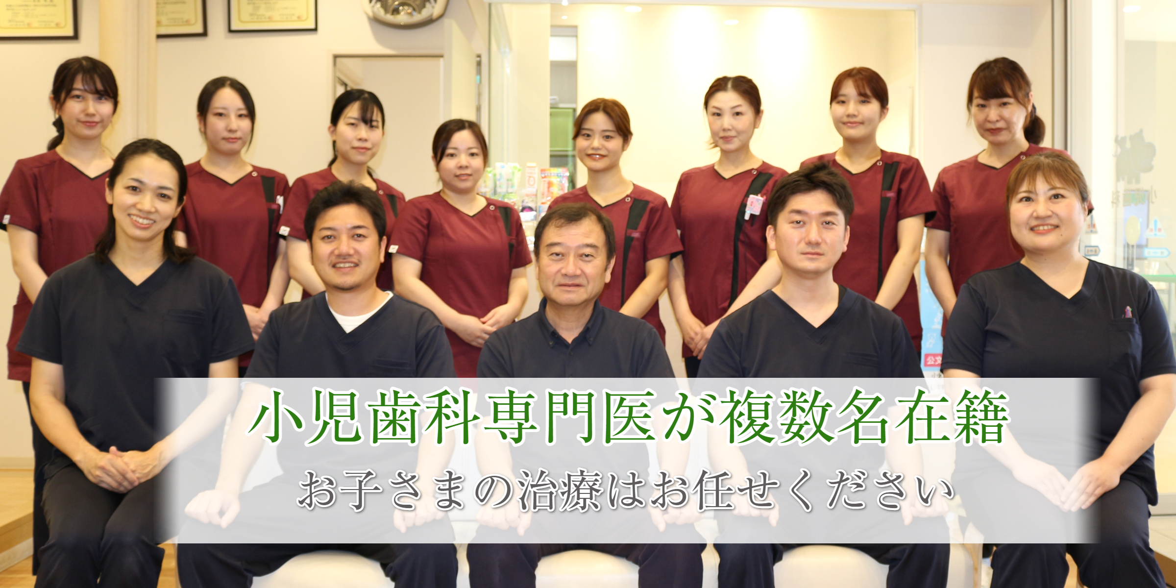 小児歯科担当歯科医師(3名)と非常勤の女性歯科医師(2名)の5名は、「小児歯科専門医」です。