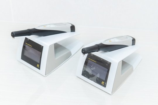 歯にレーザーを当てることで、虫歯の進行度合いを数値化できる「光学式う蝕検出装置」です。