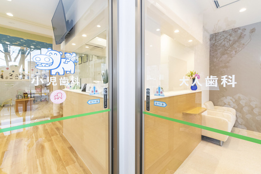 医院受付は、小児歯科用と大人歯科用の2つがございます。ご用のあるほうにお越しください。