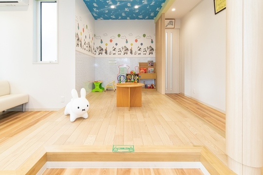 キッズスペースが、待合室・診療室内・屋外の計3か所にございます。屋外のキッズスペースにはすべり台を設置。待合室では、子供さんが楽しく遊べるおもちゃなどを備えています。